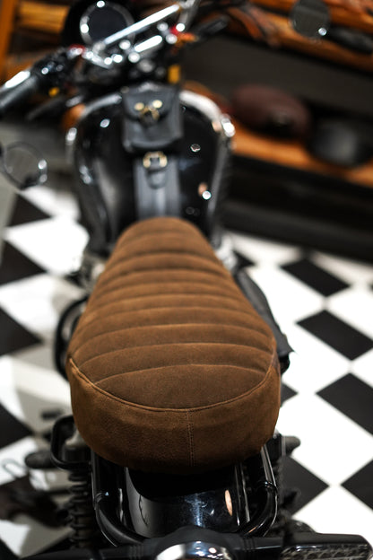 Give your Royal Enfield Bear 650 a bold scrambler-style upgrade with our premium suede leather seat cover. The suede texture instantly adds a richer, more rugged character—making the bike look more purposeful without changing the stock seat.