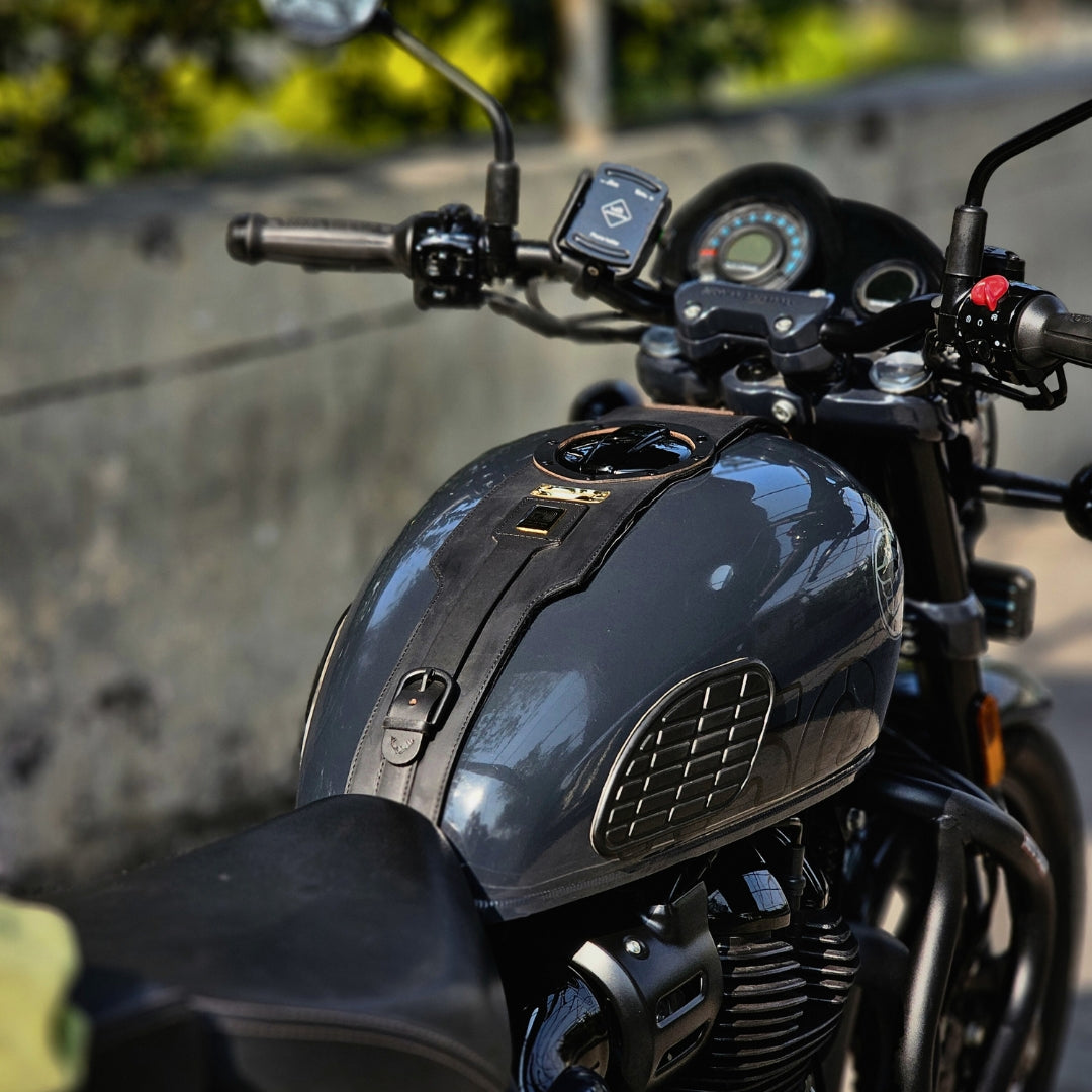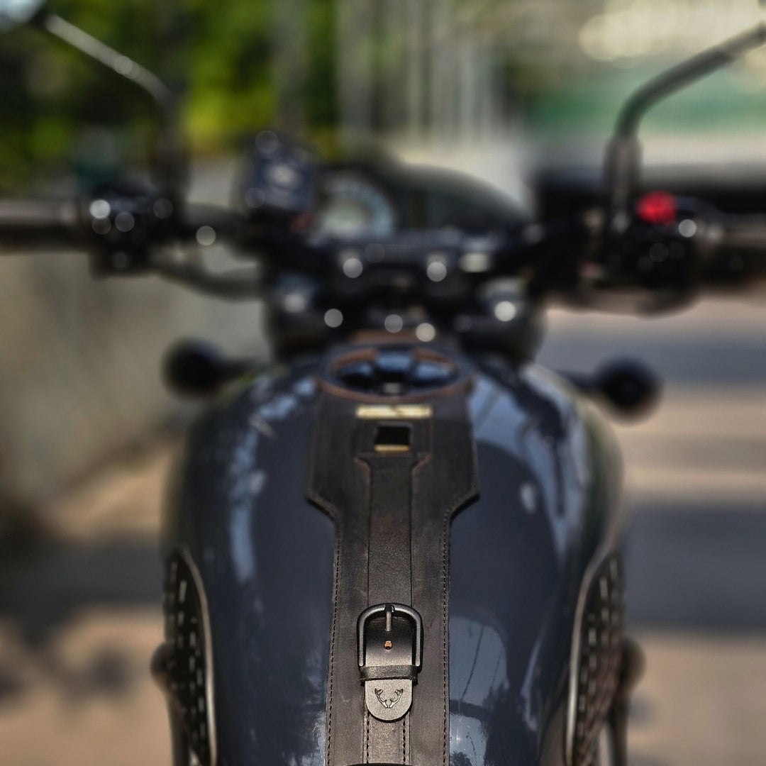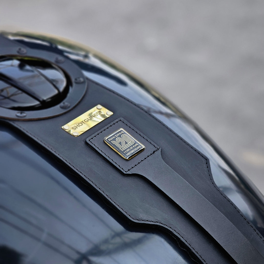 Meet the Tank Strap for Shotgun 650 — a perfect mix of heritage, function, and craftsmanship. Made from thick oiled leather, it feels rugged from day one and only gets better with time. Each piece carries the iconic Royal Enfield 120 Years badge, making it something truly special for Enfield lovers.